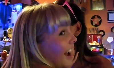 Aruna & Izi & Sabrina & Stephany in hot schoolgirl girls share big cocks between them