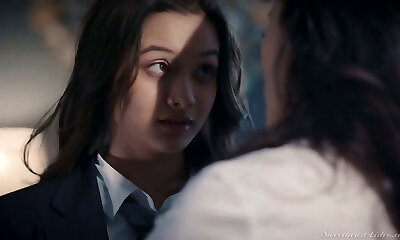 Hot like fire sexy office lesbian Alex De La Flor lures glamorous babe for fucky-fucky