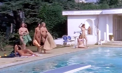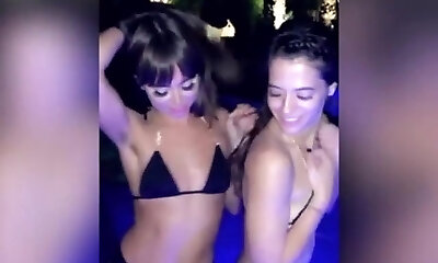 latina brunettes dance and caress each other's vags by the pool GGmansion