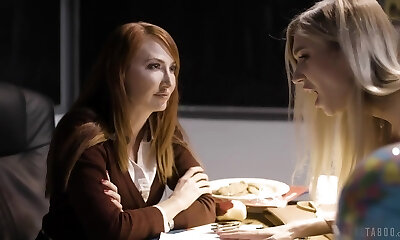 Two naughty light-haired girls have hot lezzy sex after a fight
